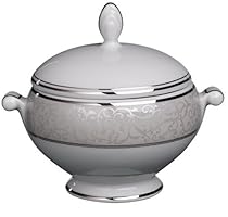 Elegant fashion formal china from Mikasa! A white fine china with a full rim border decoration in light gray and satin platinum filigree bordered by polished platinum bands. Parchment has great acceptance from brides and grooms and sets a beautifull updated table.